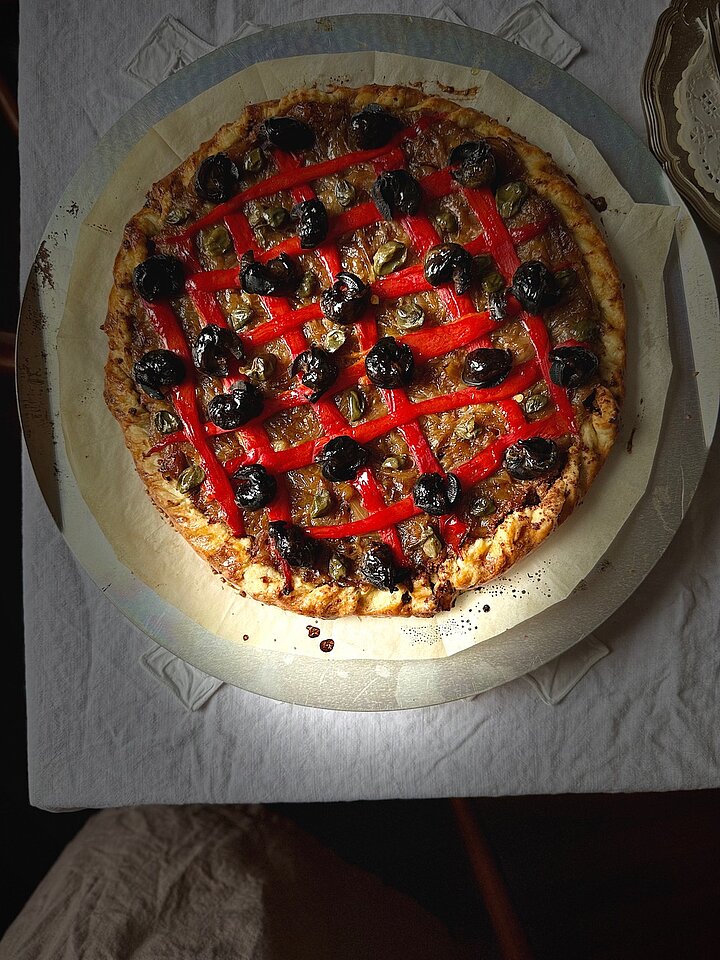 Die Wiener Weinbergschnecke hat eine lange, heute fast vergessene Tradition: Als „Wiener Auster“ wurde sie einst rund um die St. Peterskirche verkauft und galt als geschätzte Delikatesse mit fein nussigem Aroma. Heute erlebt sie eine Renaissance – nicht zuletzt dank Andreas Gugumuck, der in Rothneusiedl auf naturnahe Weise Schnecken züchtet und damit ein Stück kulinarisches Erbe in die Gegenwart holt. In dieser Pissaladière treffen die Schnecken auf süß geschmorte Zwiebeln und eine buttrige, knusprige Basis.