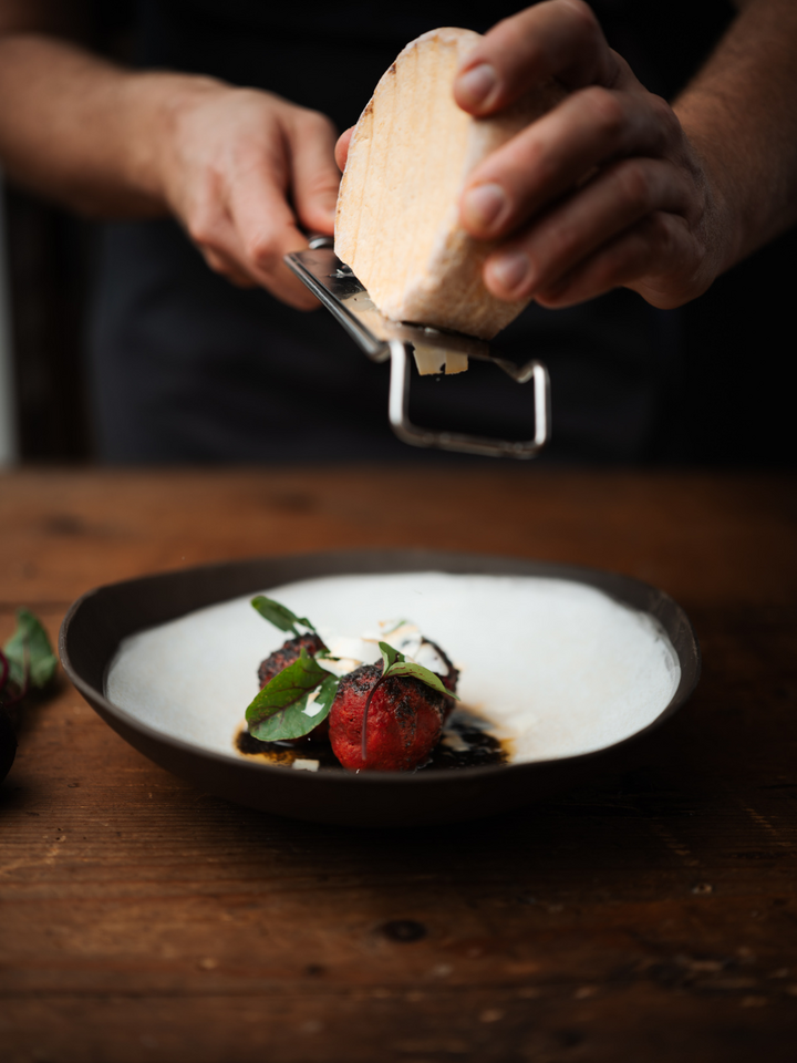 „Rote Rüben sind ein fixer Bestandteil, wenn es um Wintergemüse geht. Dazu kommen Butter, Käse, Topfen und Miso von kleinen handwerklichen Produzent:innen, die ihr Handwerk lieben. So entsteht eine runde Sache: unser Rote-Rüben-Knödel voller Saisonalität, Regionalität und Vielfalt.“