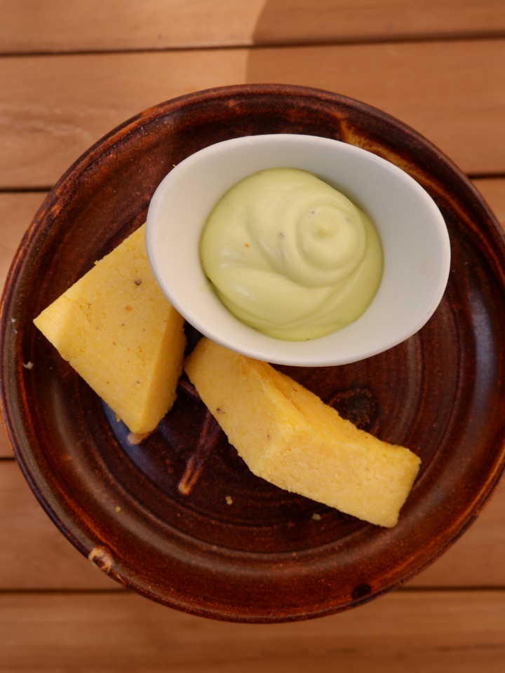 - Die abgekühlte Polenta in Rechtecke oder Rauten schneiden, dann in Mehl, verquirltem Ei und Bröseln wenden und in einer Pfanne mit etwas Öl goldgelb ausbacken.