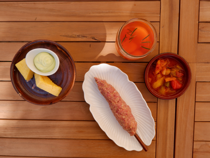 - Für die Köfte alle Zutaten in einer Schüssel gründlich vermengen. Die Masse rund um einen Spieß formen und kühl stellen.