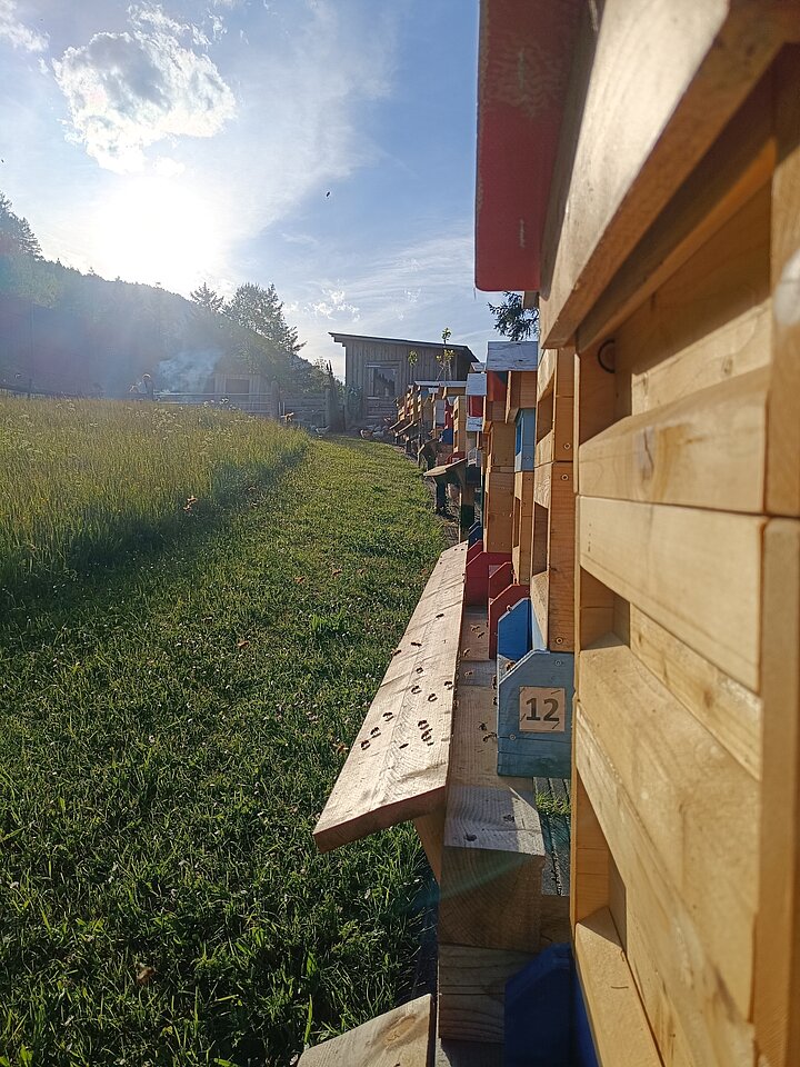 In der hofeigenen Bio-Imkerei summt es von Frühling bis Herbst eifrig. Die Bienen sind nicht nur Honiglieferanten, sondern auch ein wichtiger Bestandteil der Landwirtschaft. Sie sammeln Nektar in einer artenreichen Landschaft voller Wildblumen, Obstbäume und Kräuter. Der daraus gewonnene Honig ist naturbelassen, unverfälscht und reich an Aromen.