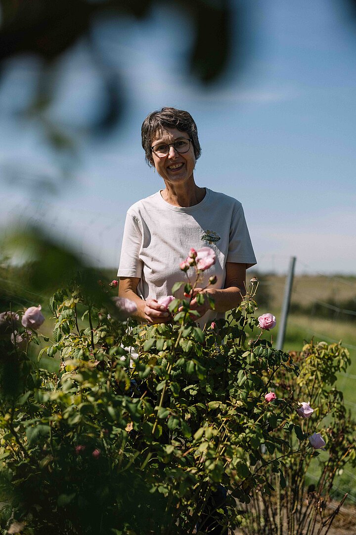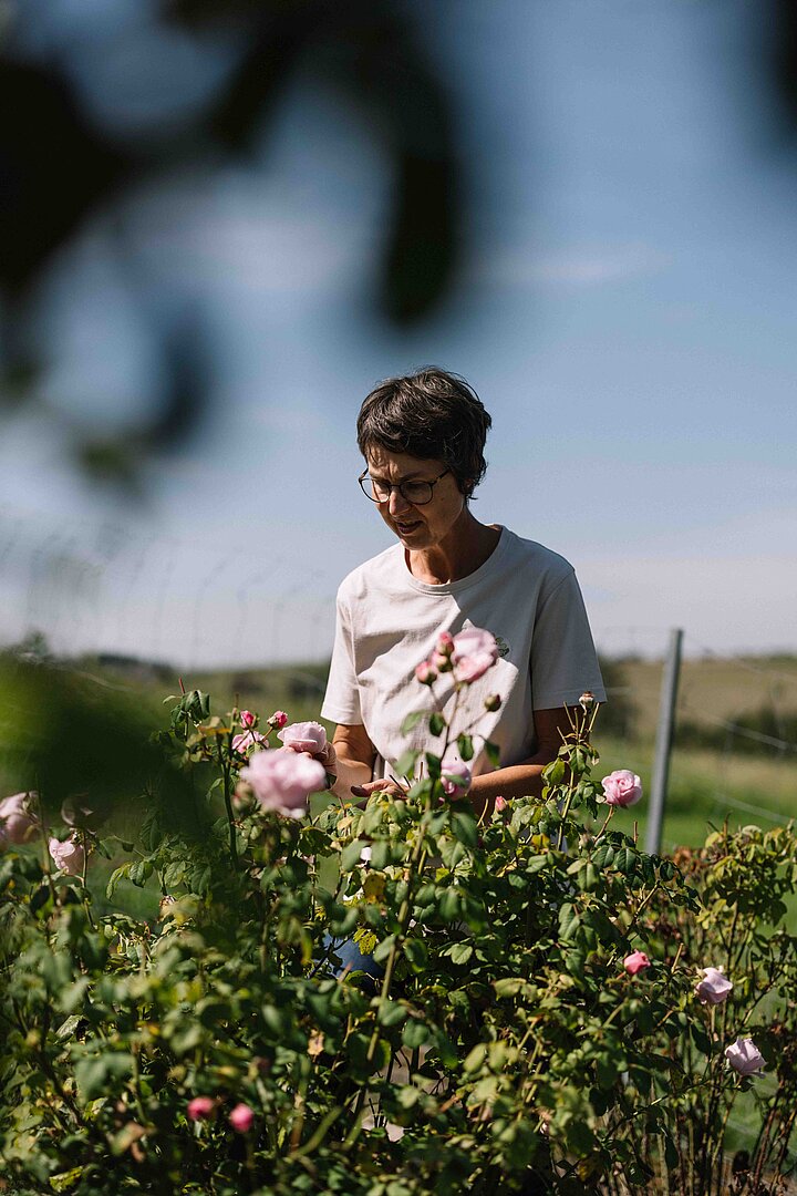 Im kleinen Garten am Hof wachsen Rosen, Lavendel, Ringelblumen, Malven, Veilchen, Kapuzinerkresse, Kornblumen und Goldmelisse – jede mit ihrem eigenen Blütezeitpunkt. Das Jahr beginnt mit Bärlauch, gefolgt von Veilchen, Kapuzinerkresse und Goldmelisse bis hin zu den Ringelblumen im Herbst. Besonders angetan haben es ihr die Damaszenerrosen: Im Juni steht Barbara täglich in der duftenden Blütenpracht und erntet bis zu ein Kilogramm Rosenblüten pro Tag. „Die Verarbeitung erfolgt immer frisch, direkt nach der Ernte – nur so bleiben Aroma, Farbe und Lebendigkeit erhalten“, sagt Barbara. Aus den Blüten entstehen Sirupe, Aufstriche, Mus, Chutneys, Blütensalze, Zucker und Teemischungen.