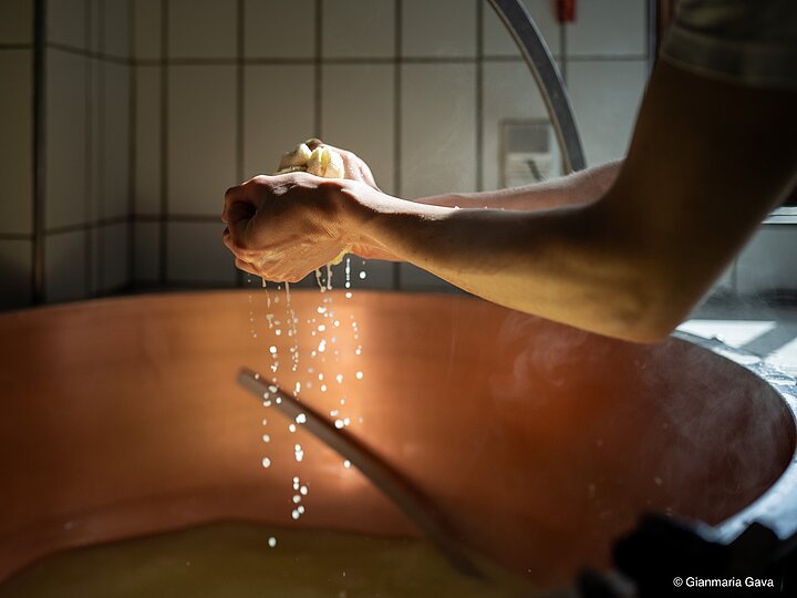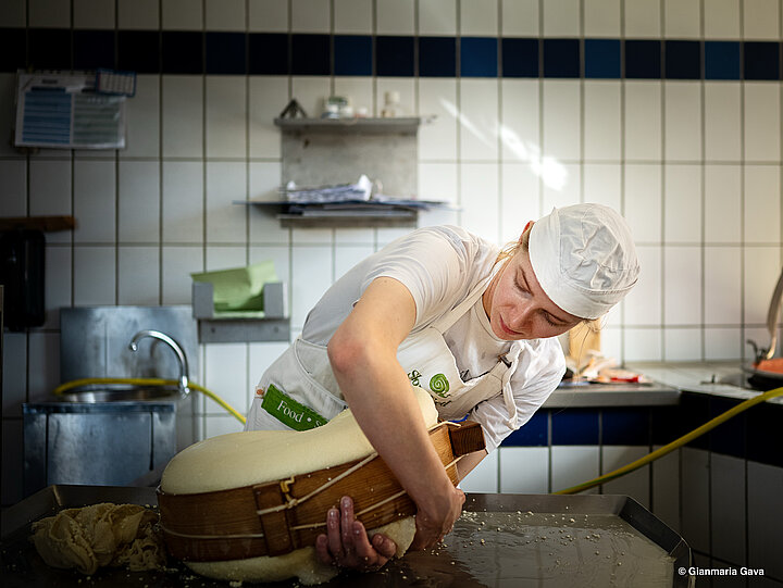 In ihrer Hofkäserei arbeitet Klara vollständig von Hand. Die Rohmilch bleibt naturbelassen, wird weder pasteurisiert noch standardisiert. Gekäst wird im Kupferkessel über dem Holzofen, beheizt mit Holz aus den eigenen Wäldern. Auf das Käsen im Kupferkessel schwört Klara, weil er einerseits eine bessere Wärmeleitfähigkeit als Edelstahlkessel hat, gleichzeitig hält das Kupfer Bakterien wie Propionsäurebakterien fern. Der Käsebruch wird händisch gerührt, mit Leinentüchern abgeschöpft und in Holzjärben gefüllt – Formen aus Rundholz, wie sie heute kaum mehr verwendet werden. Den Hersteller gibt es nur noch einmal in der Schweiz. „Trotz des viel höheren Aufwands sind wir überzeugt: Eine handwerkliche Herstellung sowie die Verwendung frischer Roh-, Heu- und Biomilch führen zu höchster Käsequalität. Wir streben kein Wachstum oder größere Produktionsmengen an, sondern die Produktqualität hat bei uns höchste Priorität“, sind sich Klara und Gunther einig.