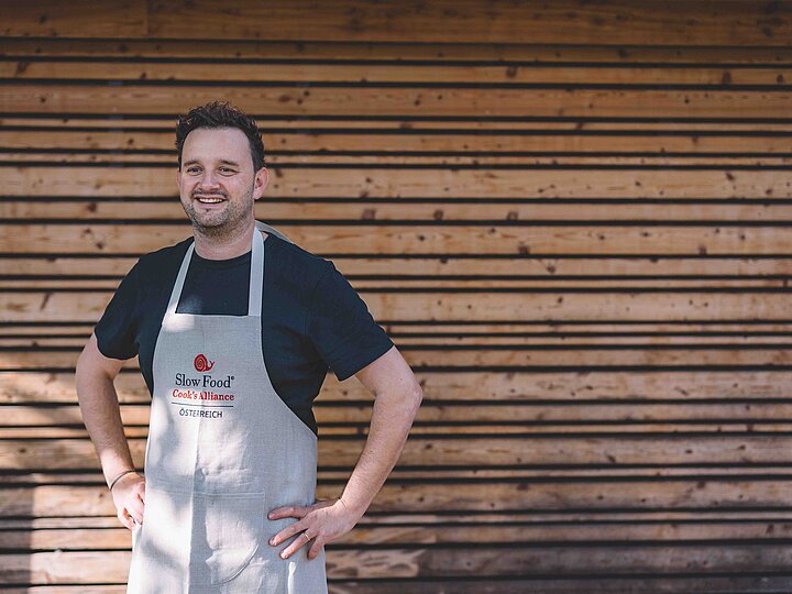 Der Schweinsbraten zischt leise, als Johann Rainer die schwere Bratpfanne aus dem Ofen hebt. Die Kruste: knusprig, goldbraun. Darunter: butterzartes Fleisch, langsam gegart – mit Zeit, mit Gefühl. Johann nimmt sein Messer zur Hand – ein Abschiedsgeschenk von seiner letzten Station als Küchenchef. Die Klinge bricht die Kruste, gleitet durchs Fleisch wie durch weiche Butter. Behutsam platziert er das Stück auf dem Teller, daneben ein Blunzenknödel, flaumig und kräftig zugleich, dazu Kraut, sanft geschmort in Apfelsaft und Kümmel. „Das ist der heilige Gral meines Vaters“, sagt Johann. Das Fleisch stammt – so oft wie möglich – von kleinen Bäuer:innen aus der Umgebung. Immer: bio. „Ich glaube, dass die Leute so gern Fleisch bei uns essen, weil wir ausschließlich Bio-Fleisch anbieten – und das halt richtig gut schmeckt.“