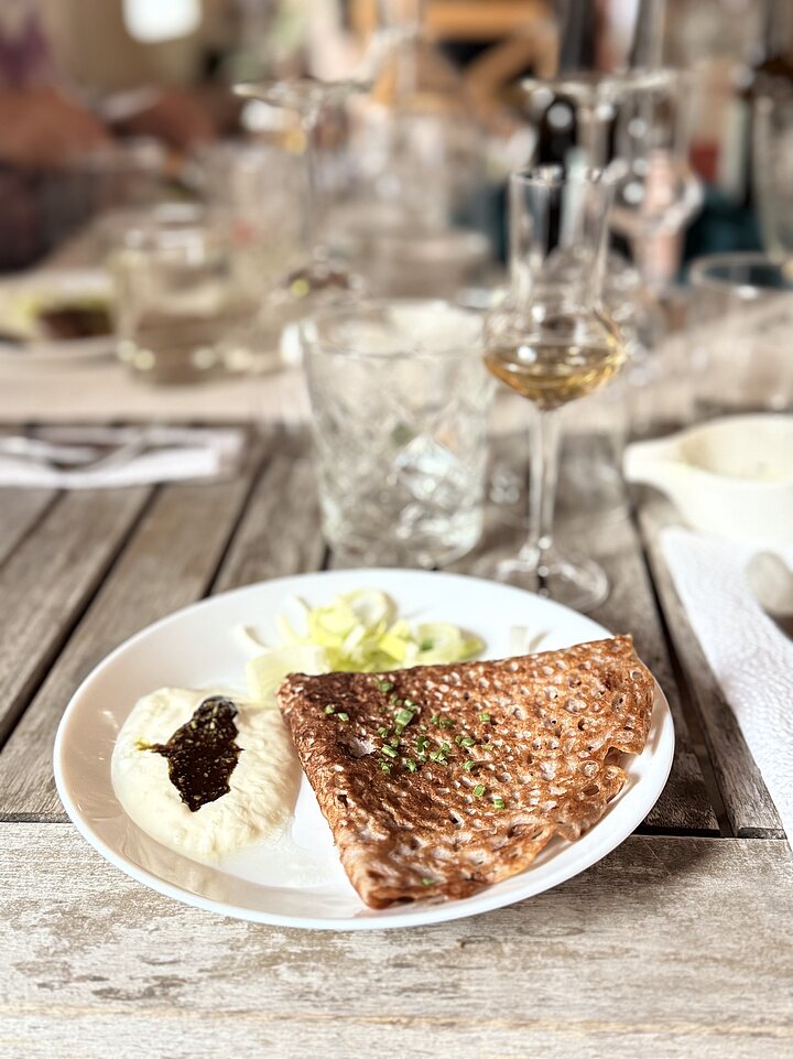Auch in der Küche zeigen sich diese Bezüge. Neben einfachen Gerichten entstehen immer wieder Interpretationen regionaler Klassiker wie Stosuppe, Apfelstrudel, überbackene Hollerblüten oder Grießkoch, angepasst an die verfügbaren Zutaten und Johannas Handschrift.