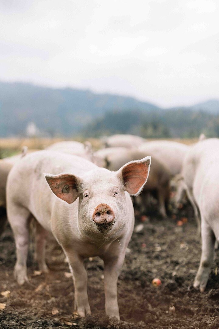 Um die Tiere, das Futter und die Weiden kümmert sich Daniel. Neben den Lämmern hält die Familie auch Freilandschweine – eine Kreuzung aus Duroc und Schwäbisch-Hällisch – oder, wie Daniel sagt, „Schafmolkeweideschweine“, die mit der anfallenden Molke gefüttert werden und als Ferkel von einem Nachbarbetrieb kommen. So schließt sich der Kreislauf am Hof. Auch deren Fleisch geht an ausgewählte Gastronomiebetriebe. „Die Schweine haben wir, solange wir käsen“, sagt Daniel. „Danach ist Pause – bis zum nächsten Frühling.“