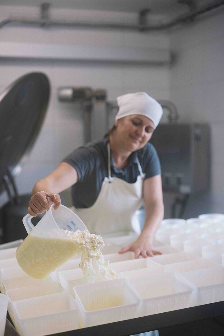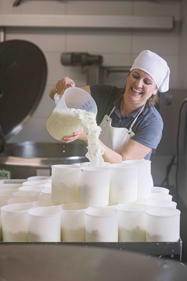 Heute verarbeitet sie rund 55.000 bis 60.000 Liter Schafmilch im Jahr zu Käse und Joghurt. Die Milch stammt von rund 140 Lacaune-Schafen – einer französischen Milchrasse, die für ihre feine, reichhaltige Milch bekannt ist. Die Mutterschafe leben auf dem nahegelegenen Biohof Padnig der Familie Widrich-Lippitz in Griffen, wo sie so viel Zeit wie möglich auf der Weide verbringen und auch gemolken werden.