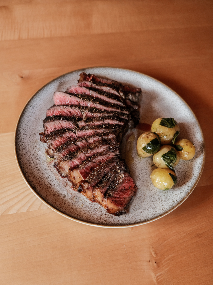 Slower, but better: Rein natürliches Futter, frei von Kraftfutter wie Soja oder Mais – die Ochsen bekommen nur das Beste, so naturnah wie möglich und am liebsten frisch von der Weide. Die altersdurchmischte Herde hat ausgiebig Gelegenheit zu grasen. So wachsen die Ochsen zwar langsamer, führen dafür aber ein langes und, in den Augen von Familie Weiß, glückliches Leben.