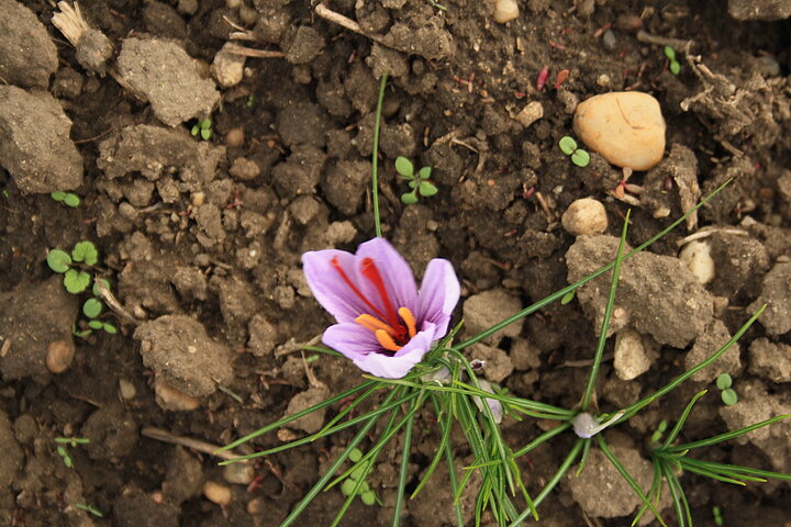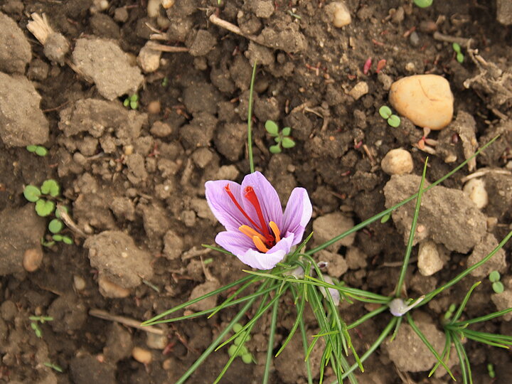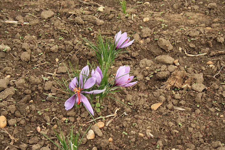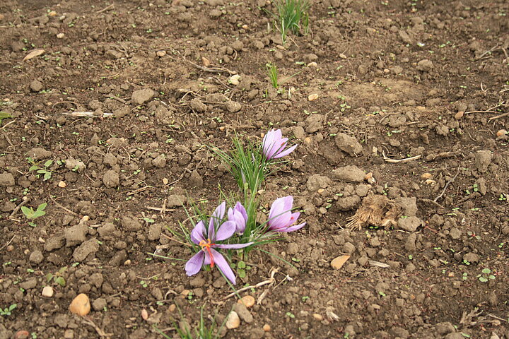 Seit sechs Jahren bewirtschaftet Dominik sein Safranfeld, heute auf einer Fläche von 0,75 Hektar. Im Herbst, wenn die lilafarbenen Blüten erscheinen, beginnt die intensivste Zeit des Jahres. Bis zum ersten Frost werden täglich die frisch geöffneten Blüten von Hand geerntet. Aus jeder Blüte werden die feinen roten Narben gelöst, die den Safran zu einem der kostbarsten Gewürze der Welt machen.