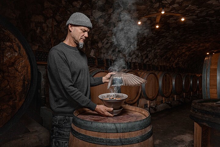 Die Weingärten sind für Familie Schmelzer Teil eines größeren Gefüges. Neben den Reben gehören Obst- und Gemüsegärten, Kräuterflächen sowie Tiere wie Schafe, Hühner und Bienen zum Betrieb. Die Schafe übernehmen einen Teil der Pflege im Weingarten, halten die Begrünung kurz und bringen gleichzeitig Nährstoffe ein. Ergänzt wird diese Form der Bewirtschaftung durch selbst hergestellte Präparate und Kräuterauszüge, die gezielt eingesetzt werden, um Pflanzen und Boden zu stärken. Chemische Pflanzenschutzmittel kommen nicht zum Einsatz. „Wir verwenden ausschließlich Präparate, die wir selber herstellen. Wir stärken die Pflanzen, spritzen kein Kupfer oder Schwefel und betreiben mit unseren Tieren – Schafen, Hühnern und Bienen – einen geschlossenen Hofkreislauf. Zusatzstoffe kommen bei unseren Produkten nicht zum Einsatz.“
