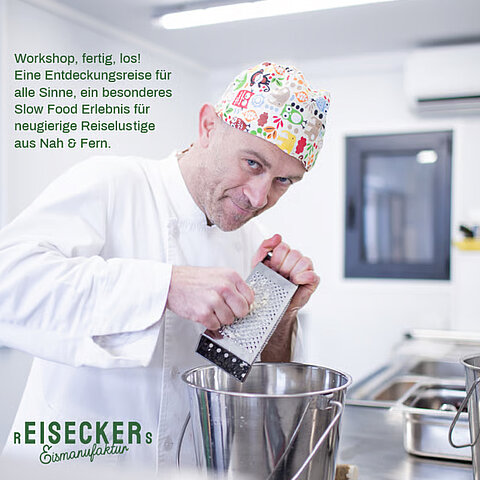 Seit 2021 produziert Michael Reisecker in seiner Eismanufaktur Bioeiseck feinstes Slow Food Bio-Eis – mit Zutaten aus der Region, so saisonal wie möglich und klimafreundlich hergestellt mit Sonnenstrom im Klimabündnis-Betrieb.