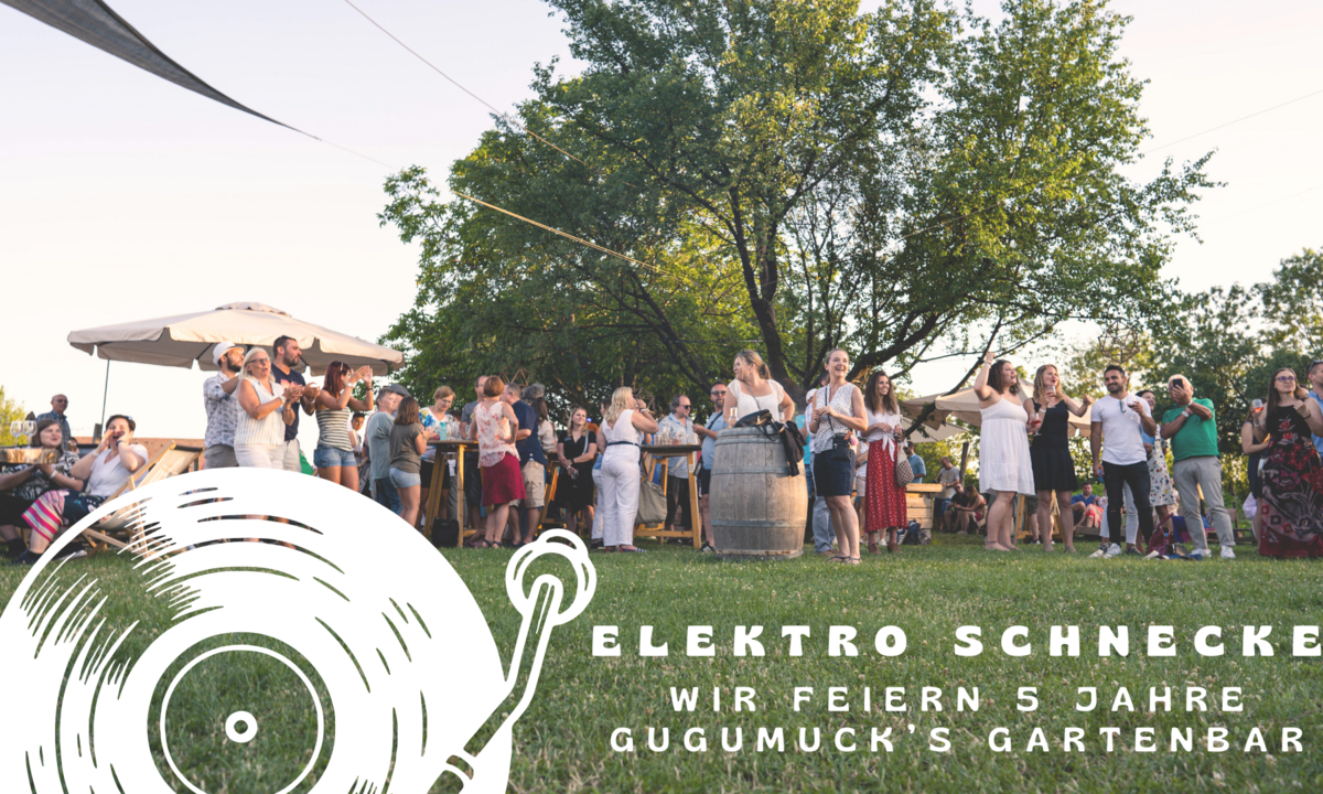 Am Samstag, 9. August 2025 wird der Garten zur Tanzfläche: Gugumuck feiert 5 Jahre Farm2Table-Genuss im Grünen – mit Elektro Beats, coolen Drinks & feinsten Snacks.
