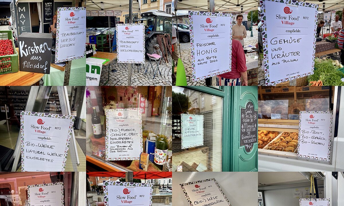 Der Genussmarkt im Retzer Land ist ein Fixpunkt für alle, die hochwertige regionale Lebensmittel schätzen – und steht an diesem Samstag ganz im Zeichen des Slow Food Schmecktakels. Im Herzen des ersten Slow Food Village Niederösterreichs präsentieren zahlreiche Produzent:innen ihre Köstlichkeiten: von Brot und Gebäck über Käse, Joghurt, Milch und Kaspressknödel bis zu frischem Wild, Wurst- und Schinkenspezialitäten. Dazu kommen frische und geräucherte Fische, Gemüse, Salate, Eingelegtes, Eier, Kürbiskernöl, Essige, Teigwaren, Mehle, Getreide, Honig, Mehlspeisen, Bier, Wein, Destillate und vieles mehr.