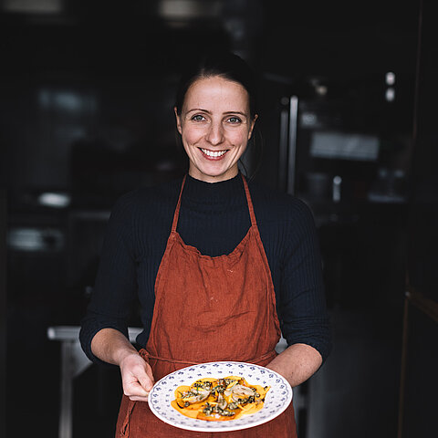 Die Zutaten stammen aus dem eigenen Garten oder von regionalen Produzent:innen, die dieselben Werte teilen. Gemüse wird in seiner ganzen Vielfalt verarbeitet – vom Blatt bis zur Wurzel. Fleisch kommt aus Weidehaltung und Hofschlachtung, wobei das ganze Tier genutzt wird. Nach dem Zero-Waste-Prinzip entsteht so ein Menü, bei dem nichts verloren geht und alles zu feinem Geschmack verwandelt wird.