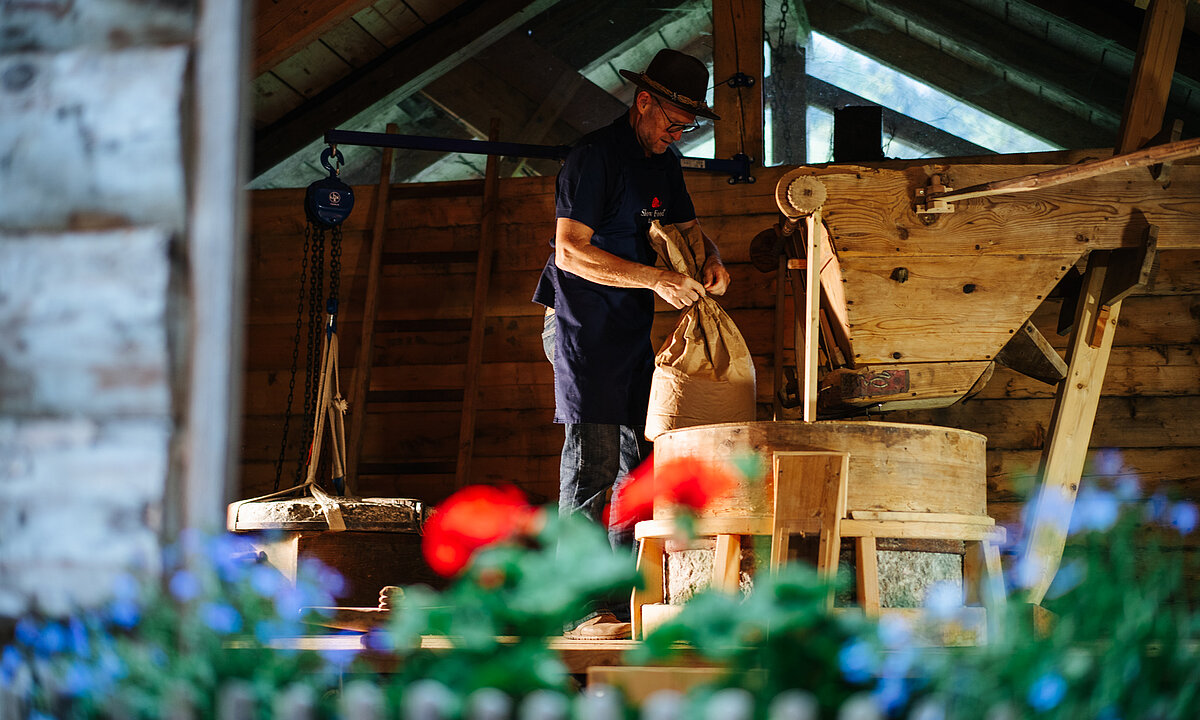 Die Baierle Mühle in Irschen ist ein Stück lebendige Geschichte – seit 140 Jahren wird hier Getreide gemahlen. Beim Slow Food Schmecktakel öffnet die Mühle ihre Türen und macht erlebbar, was sonst oft verborgen bleibt: das Mahlen von Korn zu Mehl.