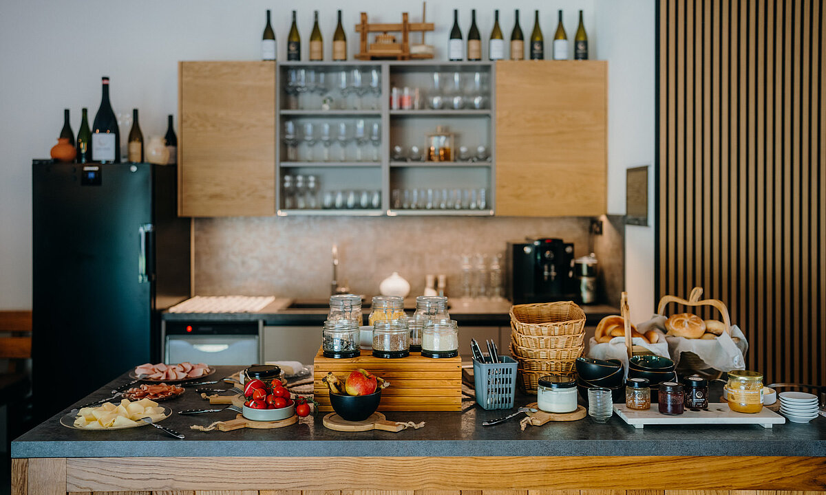 Ein prickelndes Glas Pet Nat Rosé zur Begrüßung, warm duftendes Bio-Roggenbrot und Gebäck vom Lichtenberg, dazu pikante Frühstückskreationen und zarte Eigerichte - live vom Grill. Joghurt, Müsli und Früchte, begleitet von hausgemachtem Kombucha und Bio-Säften vom Weingut.