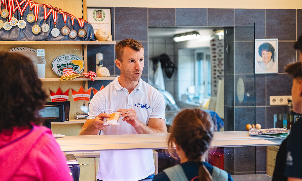 Ein sonniger Tag beginnt auf dem Hof der Familie Marzi, ideal für das Fangen einer frischen Gebirgsforelle. Mit Kescher und der Erfahrung von Gerhard geht es zu einem nahegelegenen Teich. Das klare, eiskalte Wasser der Saualpe lässt auf eine gute Ausbeute hoffen. Nach einer geduldigen Wartezeit zappelt plötzlich etwas im Netz – eine prächtige Gebirgsforelle wird aus dem Wasser gezogen. Der perfekte Ausgangspunkt für ein kulinarisches Erlebnis.