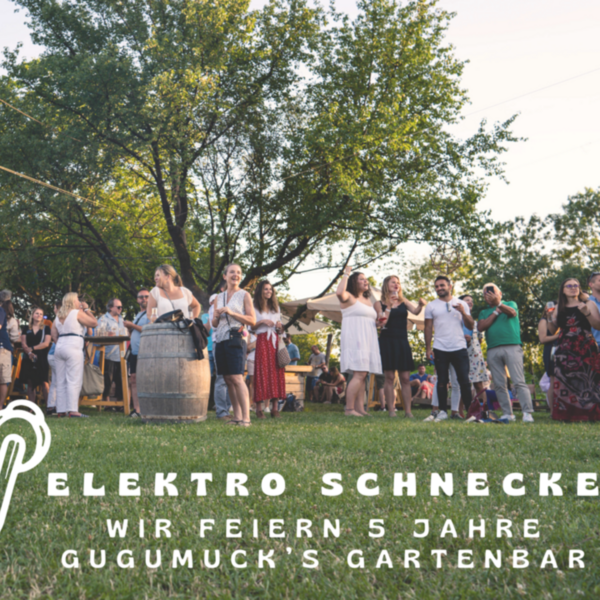 Samstag, 09.08.2025 Elektro Schnecke | 5 Jahre Gugumuck's Gartenbar Bei „Elektro Schnecke“ verwandelt sich Gugumuck's Gartenbar in eine grüne Tanzfläche – mit elektronischen Beats, Naturwein, Craft Beer und feinem Farm2Table-Genuss. Gefeiert wird ab 15 Uhr mit Verkostungen und DJ-Sounds im Garten, danach geht’s weiter zur Afterparty im Zukunftshof Club. | | | |