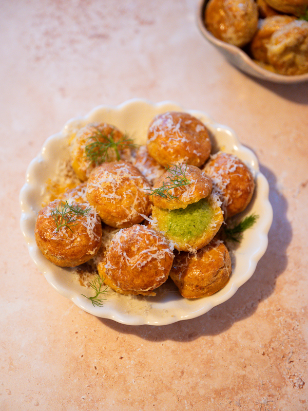 | Für diese Gougères hat unsere Slow Food Köchin Babs Zobl zum Grana Granit der Loisnhof Bergkäserei gegriffen. Der extrem lange gereifte Heumilch-Hartkäse, oft liebevoll als „Mühlviertler Parmesan“ bezeichnet, bringt eine würzige Intensität mit und verleiht dem Brandteig eine kraftvoll-alpine Note verleiht. Gefüllt mit einer frischen Petersiliencreme entsteht ein eleganter, dennoch bodenständiger Aperitif-Happen, der zeigt, wie gut internationale Küchentraditionen mit hochwertigen Slow Food Produkten aus Österreich harmonieren. | | | |