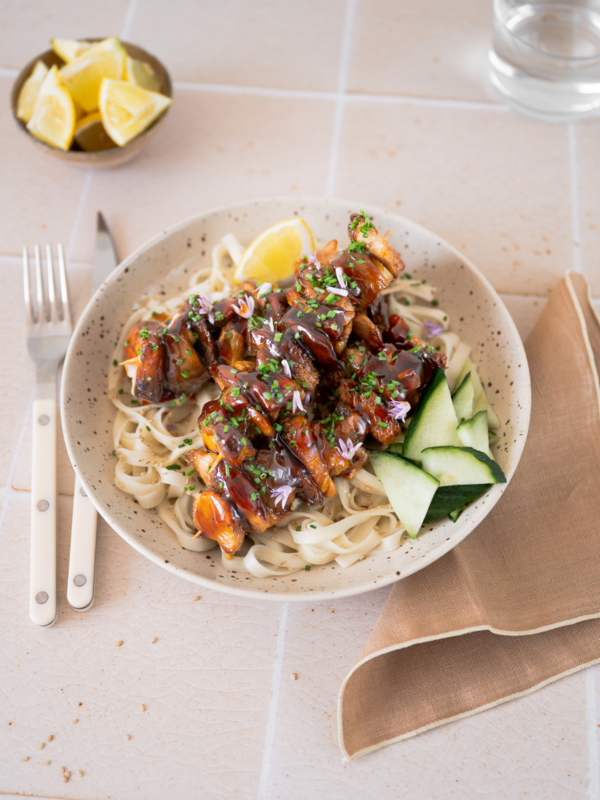 |  Igelstachelbart-Melanzani-Spieße mit Teriyaki-Soße und Ramen-Nudeln Unsere Slow Food Köchin Babs Zobl bringt mit ihren Rezepten nicht nur saisonales Gemüse auf den Teller, sondern auch viel Kreativität, Geschmack und Freude am Kochen. Diesmal hat sie ein sommerliches Gericht für uns vorbereitet: pflanzliche Spieße mit Igelstachelbart-Pilzen und Melanzani, karamellisiert in Teriyaki-Soße, serviert mit Ramen-Nudeln und Gurke. | |