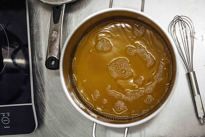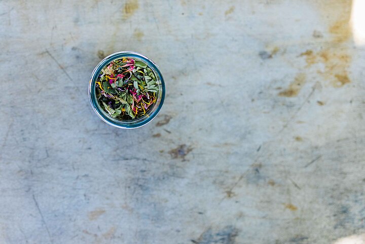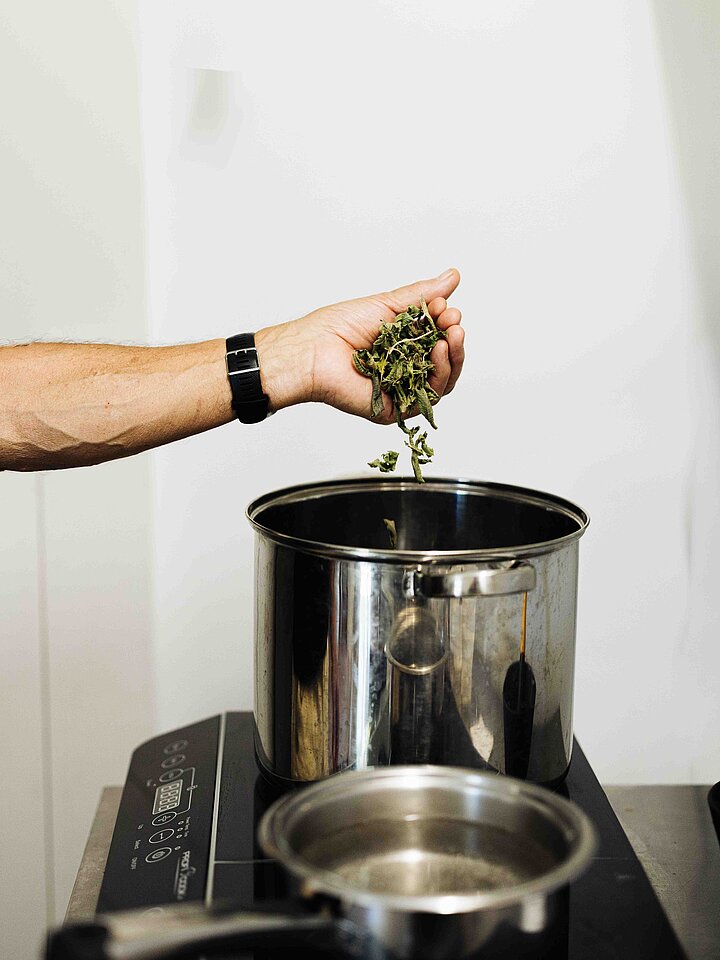 Anna zerreibt getrocknete Zitronenverbene, Zitronenmelisse und Minze zwischen den Fingern, um die ätherischen Öle freizusetzen – etwas, das sie auch für die Teezubereitung empfiehlt. Als Albert die Kräuter ins heiße Wasser gibt, erfüllt ihr Duft den ganzen Raum. Was danach folgt, gleicht einer kleinen Alchemie: die richtige Temperatur, das vorsichtige Rühren, das genaue Beobachten der Gärung. Tatsächlich: Es bewegt sich etwas im Topf.