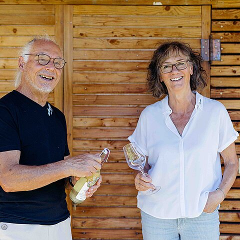 „Sitzen und Nichtstun geht gar nicht“, sagt Albert Neumeister. Gemeinsam mit seiner Frau Anna hat er nach Jahrzehnten im Weingut Neumeister ein neues Kapitel aufgeschlagen. Als Annas und Alberts Sohn das Weingut und die Saziani Stub'n in Straden übernimmt, widmen sich die beiden ihrem neuen Herzensprojekt: „AnnAlbert mit Sonne“. Denn: „Ohne Sonne geht gar nichts.“