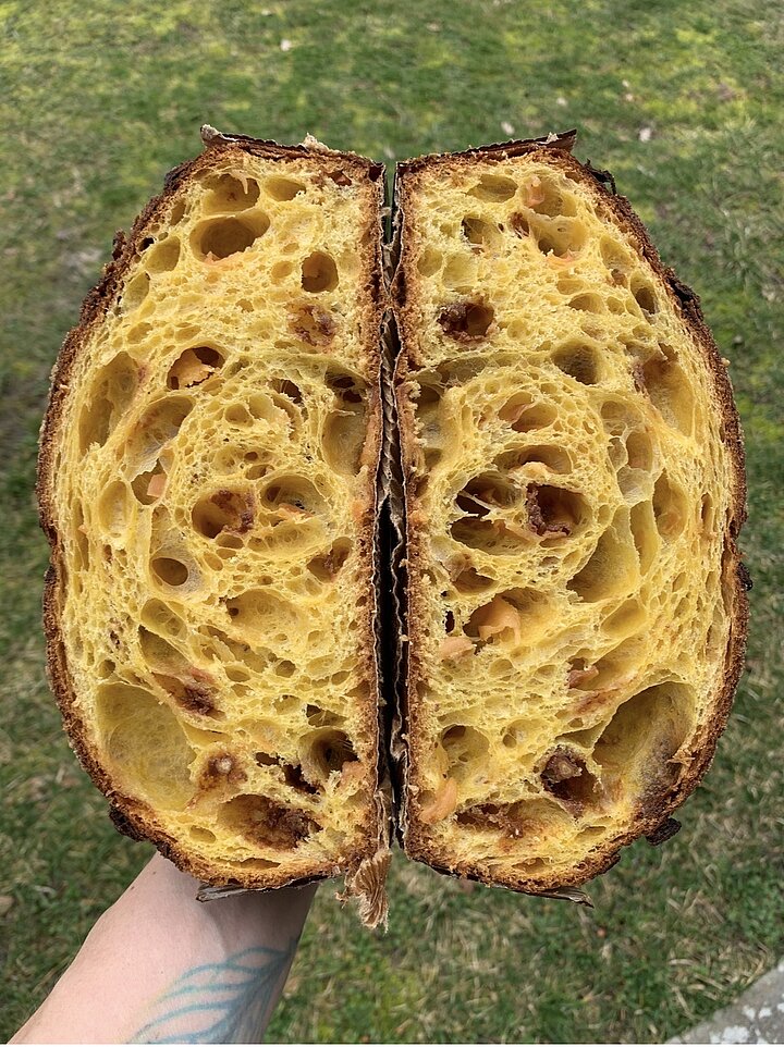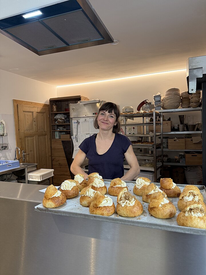 Gleichzeitig bleibt ihr Blick offen: Panettone, Colomba oder Maritozzi stehen neben Roggenbrot, Dinkeltoast oder Briochebuns. „Ich mag das Internationale – ich will mich mit meinen Backideen nicht festlegen.“ Während sie für ihre Brote passende regionale Mehle gefunden hat, arbeitet sie im süßen Bereich mit Mischungen aus heimischem und europäischem Bio-Mehl, um die nötige Teigstruktur zu erreichen.