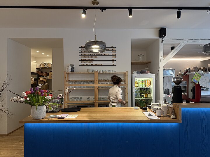 Mit der Übernahme eines bestehenden Cafés in Vöcklabruck hat sie dem Projekt einen dauerhaften Rahmen gegeben. „Ich habe erkannt, dass ich einen Auftrag mit dem Backen habe“, sagt Verena. Sie beschreibt diesen Schritt auch als bewusste Entscheidung: „Ich habe gewusst, ich wollte & musste mutig sein.“ Ihr Ziel war es, Alternativen zu konventionellem Brot zu schaffen und einen Ort zu entwickeln, an dem man sich gerne aufhält – mit handwerklich hergestellten Backwaren und gutem Kaffee. „Mir ist klar geworden, dass ich in der Stadt Vöcklabruck auch einen gesellschaftlichen Auftrag habe“, sagt sie.