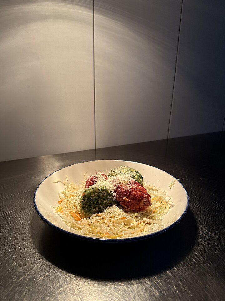Die Karte ist bewusst klein gehalten und wechselt regelmäßig. „Uns ist es wichtig, frisch und handwerklich gut zu kochen“, sagt Bernhard. Mindestens ein vegetarisches Gericht gehört immer dazu; Fleischgerichte finden sich ebenfalls auf der Karte, stehen jedoch nie im Mittelpunkt. Gleichzeitig spiegeln sich persönliche Einflüsse in der Küche wider: Bernhard war mit einer Südtirolerin verheiratet, daher tauchen Gerichte wie Knödel oder Risotto immer wieder auf. Ganga, der aus Nepal stammt und Bernhard in der Küche unterstützt, bringt ebenfalls seine eigene kulinarische Handschrift ein und kümmert sich häufig um das „Hüttenschöpfgericht“ – etwa Dal oder Curry. Und auch auf einer Hütte orientiere sich die Küche an den Jahreszeiten. „Im Winter gibt es halt mehr Kraut und Rüben.“