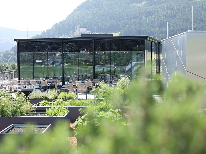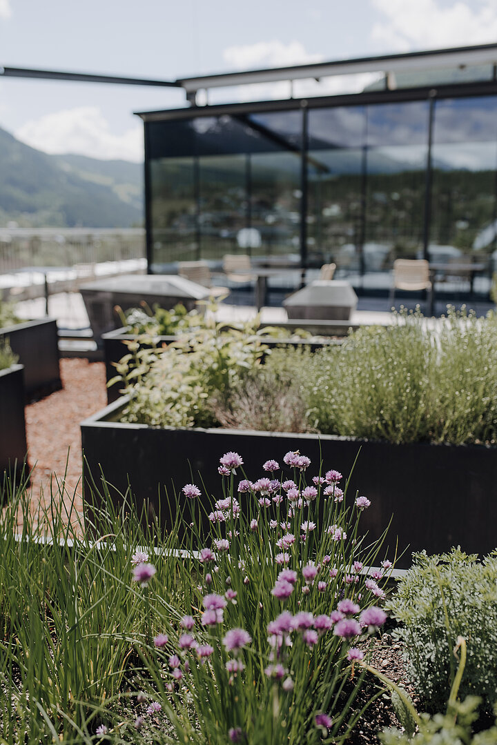 Ergänzt wird dieses Netzwerk durch eigene Produktion im Haus – etwa bei Brot und Gebäck – sowie durch Zutaten aus unmittelbarem Umfeld. Gemüse und Kräuter wachsen im Dachgarten, Obst und Beeren stammen aus einem angrenzenden Waldgarten mit einer breiten Vielfalt, von Äpfeln, Marillen und Kirschen bis zu Vogelbeeren, Dirndln oder Ribiseln. Hinzu kommen Wildkräuter und -beeren aus der umliegenden Landschaft sowie kultivierte Produkte wie Kartoffelraritäten. Verarbeitet wird, was vorhanden ist; Verluste werden vermieden, auch wenn, wie Edgar anmerkt, „dann und wann die Vogerl schneller sind“. Diese enge Verzahnung von direktem Bezug, Eigenproduktion und Sammlung prägt die Auswahl und Verfügbarkeit der Produkte im Jahresverlauf.