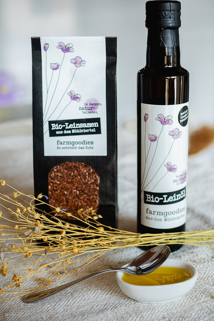 Alle farmgoodies-Produkte, u.a. das kaltgepresste Bio-Leinöl und die Bio-Leinsamen, sind im farmgoodies-Online-Shop erhältlich.