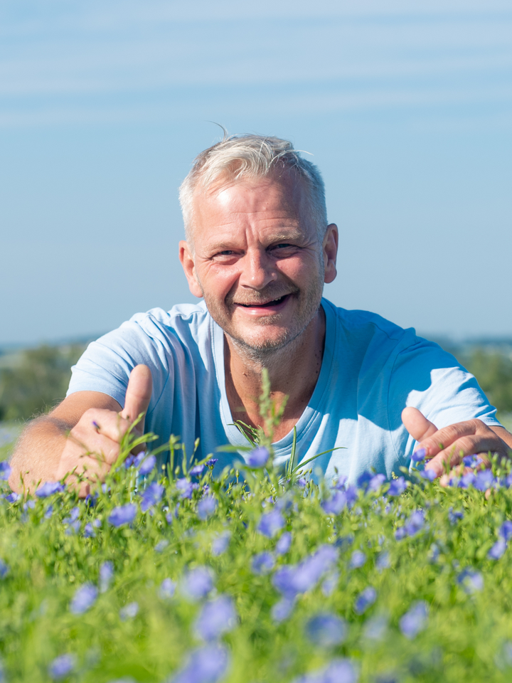 „Der Leinsamen wird direkt bei uns am Bio-Hof angebaut, geerntet, gereinigt, getrocknet, gepresst und abgefüllt. Kürzere Wege gibt es sonst nirgendwo, und deshalb bleiben die essenziellen Nährstoffe erhalten.“
